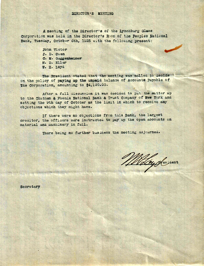 Home > Lynchburg Glass >Historical Archive > Lynchburg Glass Corporation Minutes > this page